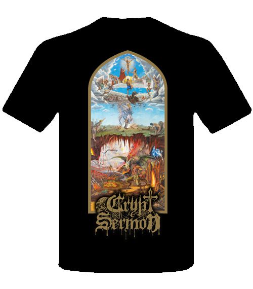 Full-color t-shirt commemorating the brand new album from Crypt Sermon titled The Ruins of Fading Light out Sept 13 2019 on Dark Descent Records. Printed on Gildan Ultra t-shirts.
