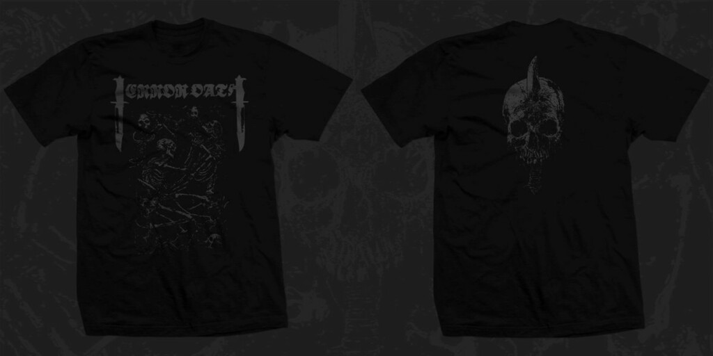 Limit to 30 units. Design supporting TERROR OATH’s two thousand and fourteen demo the toxic byproduct created by the deviants of WEREGOAT mixing with the sulfur of VASSAFOR/ex-DIOCLETIAN alumni V.K.. Recorded rough and live in the WEREGOAT dungeon in Portland the resulting curses are an antidote to the poisonous cesspool of clean dull idea regurgitating weaklings. Illustrations by Daniel Desecrator. Dark grey plastisol ink on Gildan heavy cotton 100% cotton shirts. Printed by Vault Of Dried Bones.