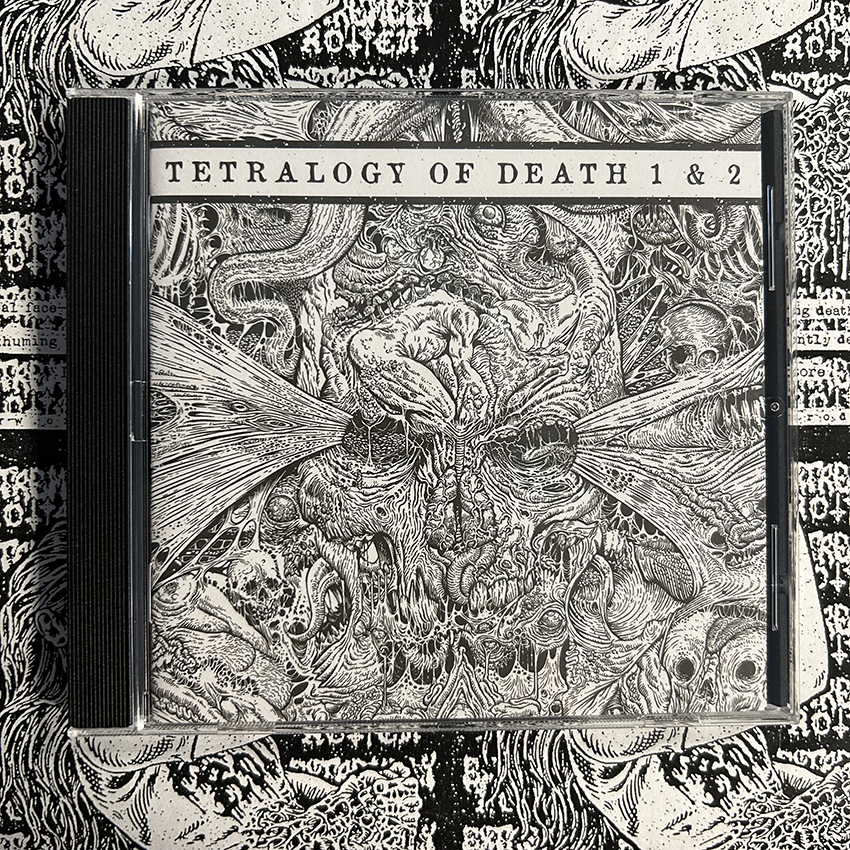 Extremely Rotten Productions presents the compiled Tetralogy of Death 4-way split releases on CD, offering exclusive songs from Danish death metal bands ASCENDENCY, CHAOTIAN, DEIQUISITOR, PHRENELITH, SEPTAGE, SEQUESTRUM, TAPHOS and UNDERGANG